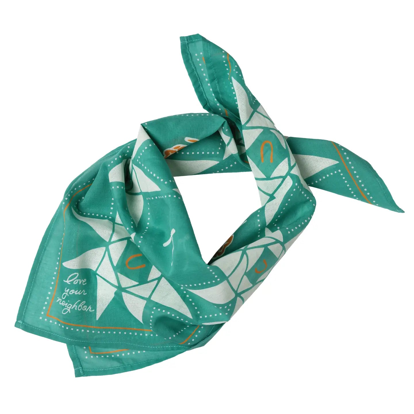 'Love Your Neighbor' | Cotton Voile Bandana in Peacock