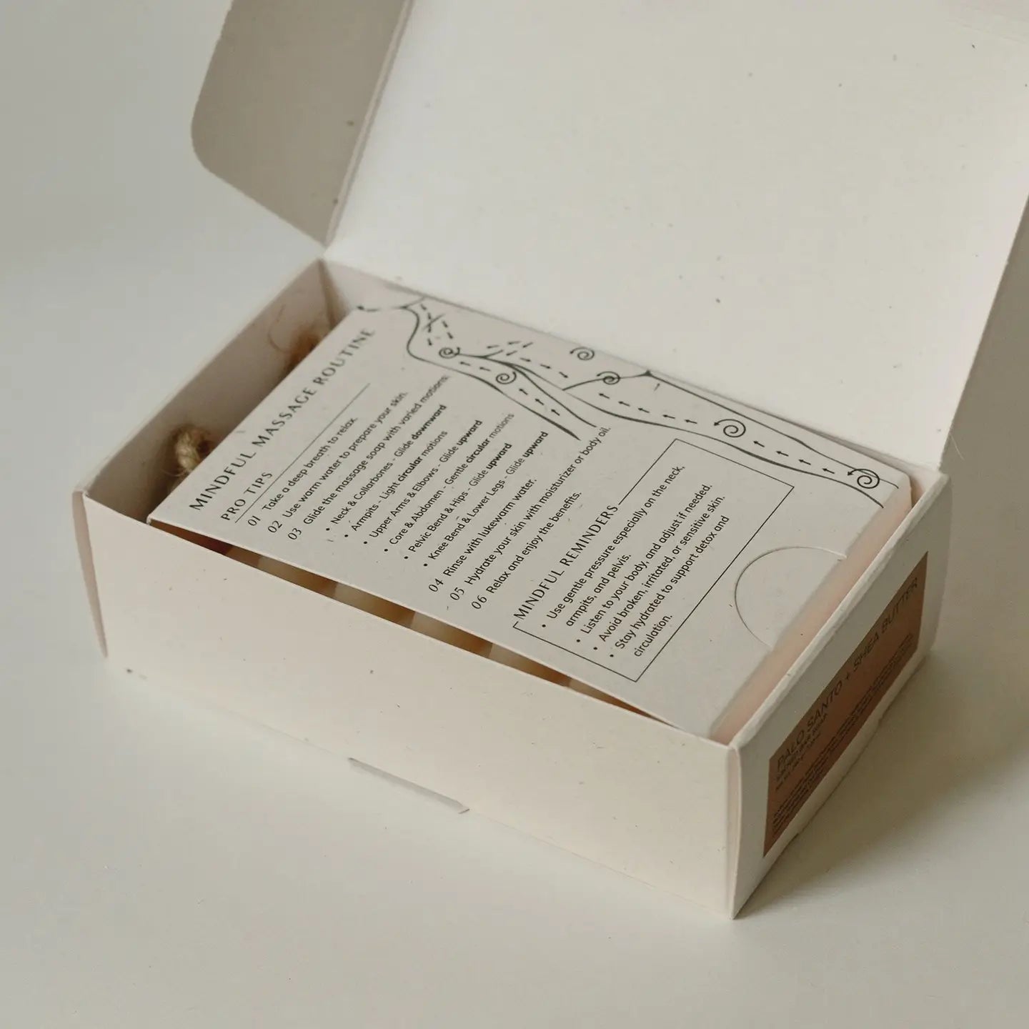Infused with pure Palo Santo essential oil from Ecuador, known for its spiritually purifying, calming, and grounding benefits. Dual-texture design: noduled massage side promotes lymphatic drainage, muscle relief, and improved circulation; smooth side provides gentle, thorough cleansing.