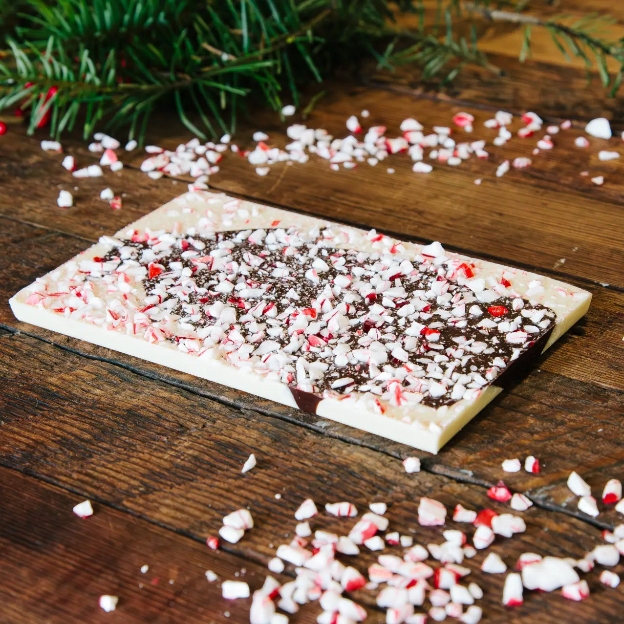 This nostalgic holiday classic treat is made using one layer of our award-winning, single-origin, 72% Belize dark chocolate and a second layer of peppermint-infused white chocolate, with a final dusting of crushed peppermint candy bits. Only available during the holiday season!