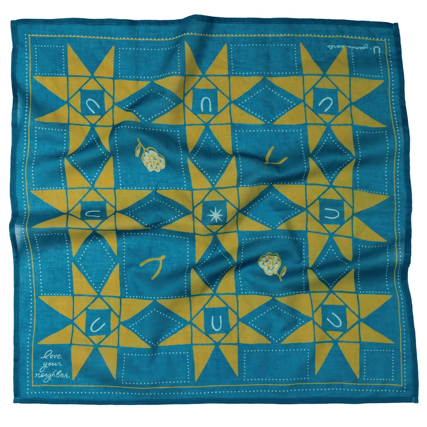 'Love Your Neighbor' | Cotton Voile Bandana in Peacock